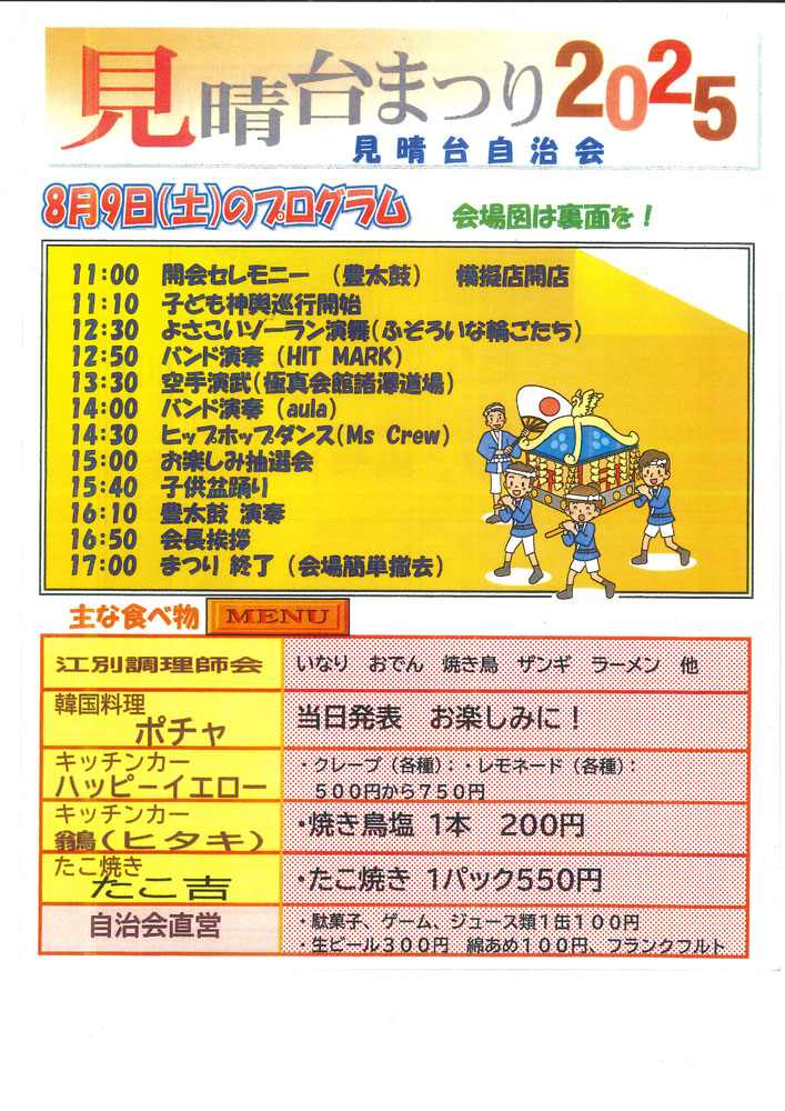 明日8月9日(土)11:00から見晴台まつり2025を開催します。