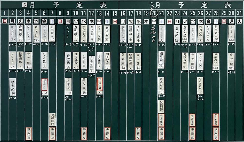 2026年3月 自治会館使用予定表(2026年3月4日更新)
