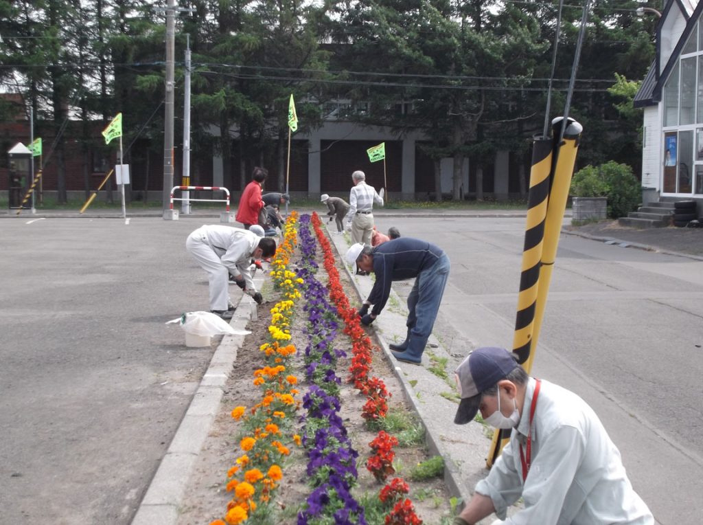 6月22日(土)午前9時からの花壇整備には、36名の方々のご協力により、会館駐車場周辺の花壇から雑草が除かれ、大変綺麗になりました。ありがとうございます。
