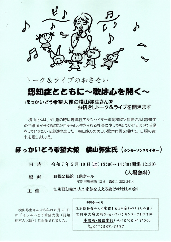 ほっかいどう希望大使の横山弥生さんをお招きし、トーク&ライブを開きます。