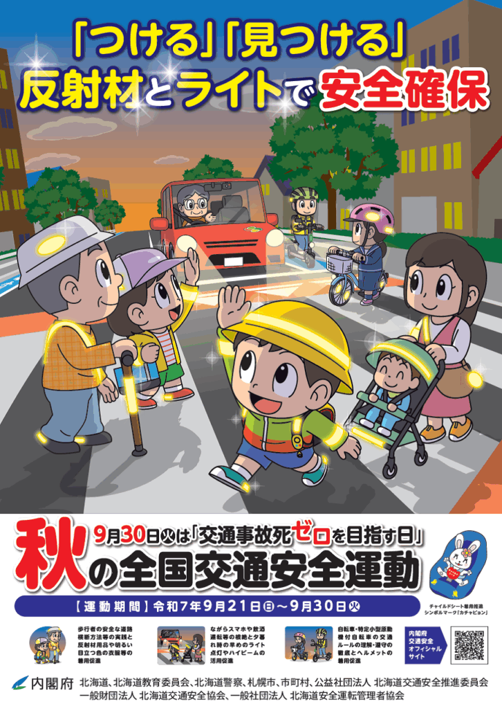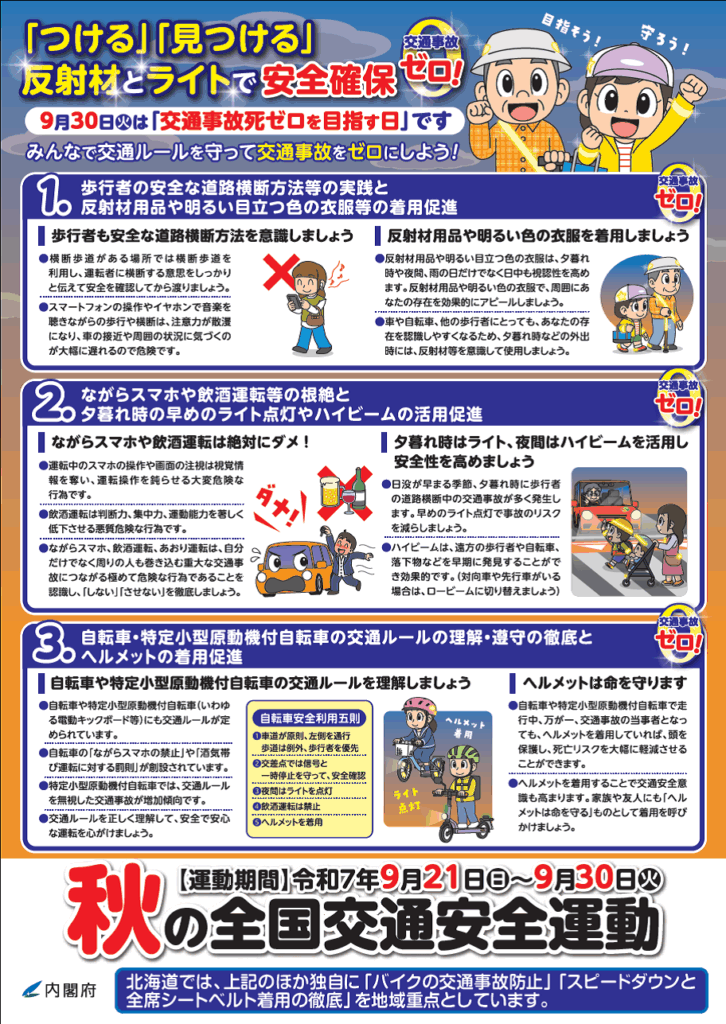 9月21日(日)~30日(火)は秋の全国交通安全運動期間です。