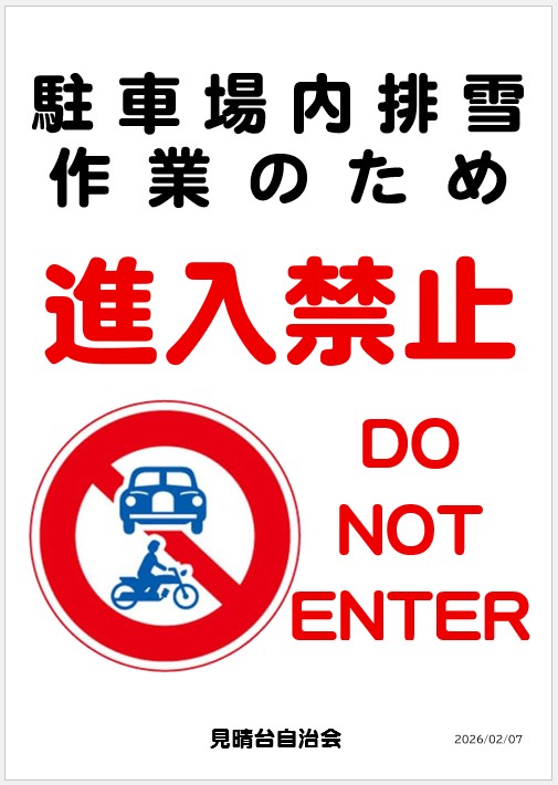 2026年2月10日(火)朝から、自治会館の排雪を行います。